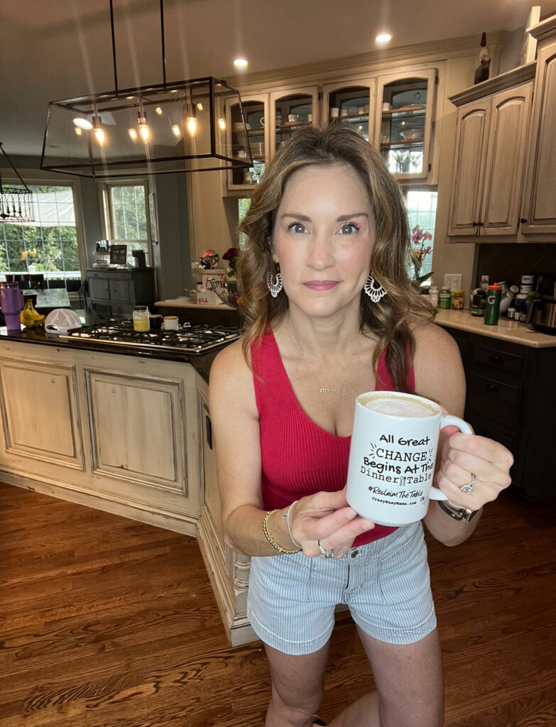 I am excited to announce, I have started my very own Crazy Busy Mama mug collection. “All Great Change Begins at the Dinner Table” is on of my signature exclusive mugs and you can SNAG IT HERE – Each one of my designs comes with my CBM signature with a ?✝️ on each. I hope you enjoy having coffee with me each morning and these exclusive CBM designs encourage you to put your best foot forward each day!