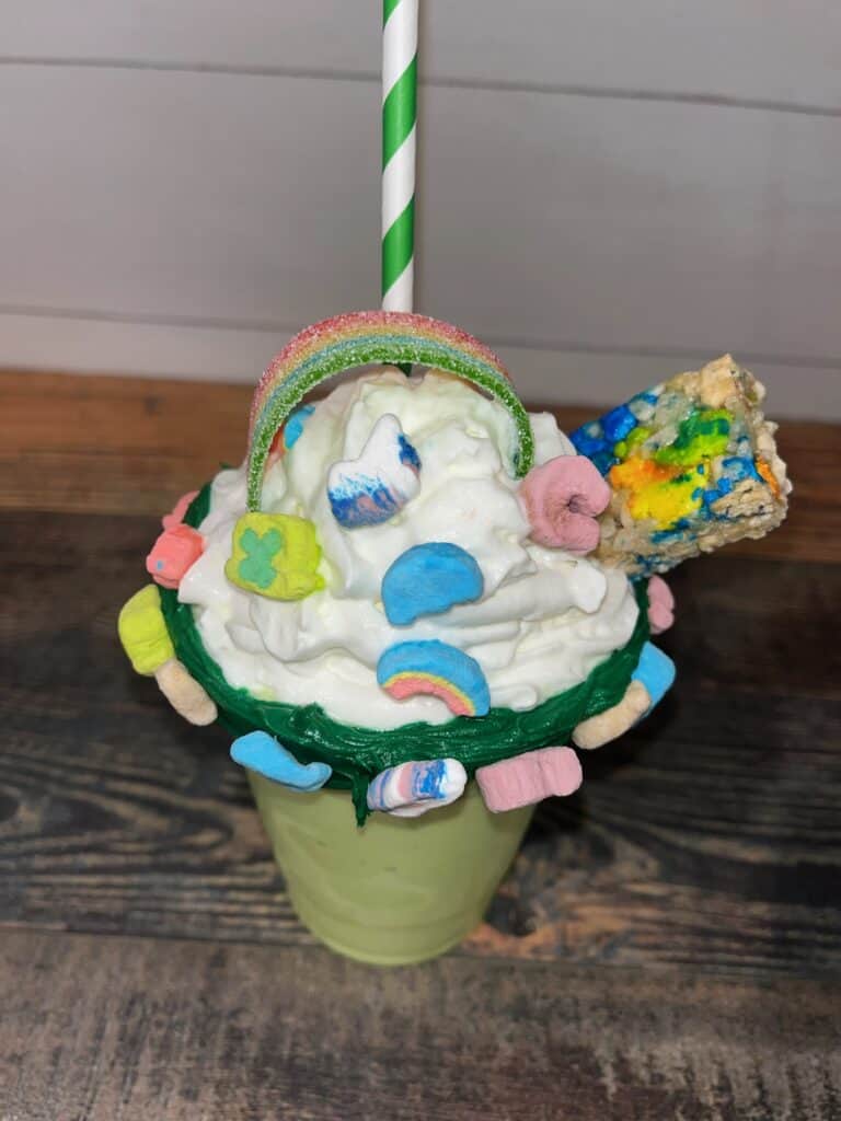 This St. Patrick’s Day Shake pairs perfectly with Lucky Charms Marshmallow Treats. The chewy, marshmallow cereal bars complement the creamy shake beautifully and make your St. Patrick’s Day dessert table feel complete.
