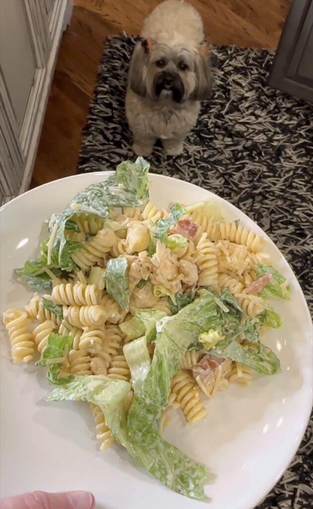 I had to have a quick bite… and Lulu (my adorable fur baby) is secretly hoping I will drop some so she can have a bite too!