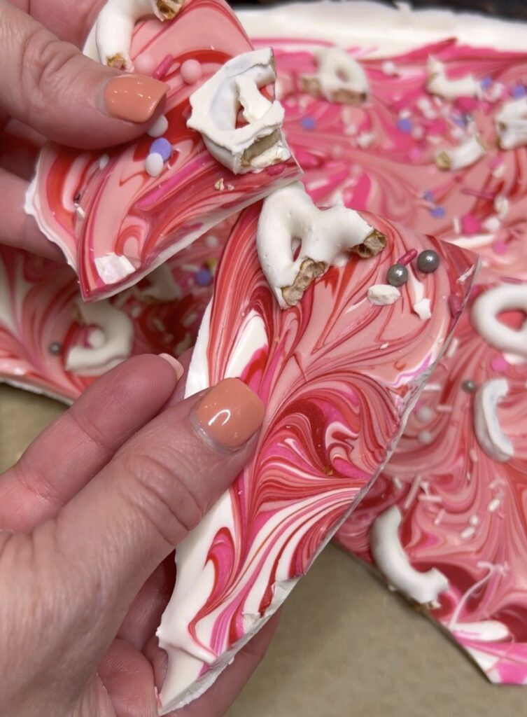 How to step by step photos for Valentine’s Day Chocolate Bark