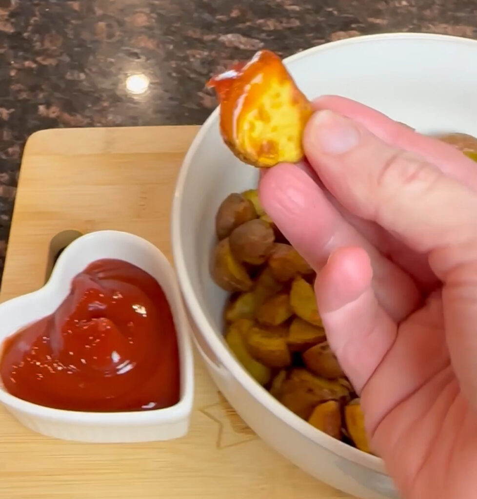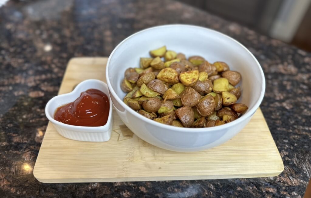 Looking for an easy throw together side for your dinner? These Air Fryer Potatoes are perfect for Slider night or really any dinner you need a quick side for. Just pair with your favorite dipping sauce, we just did ketchup with ours and everyone will be wishing you had made more! Just 3 simple ingredients make these easy throw together Air Fryer Potatoes