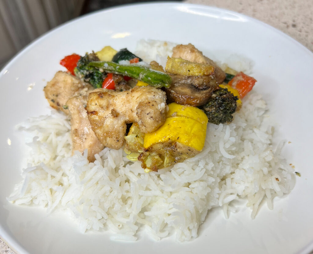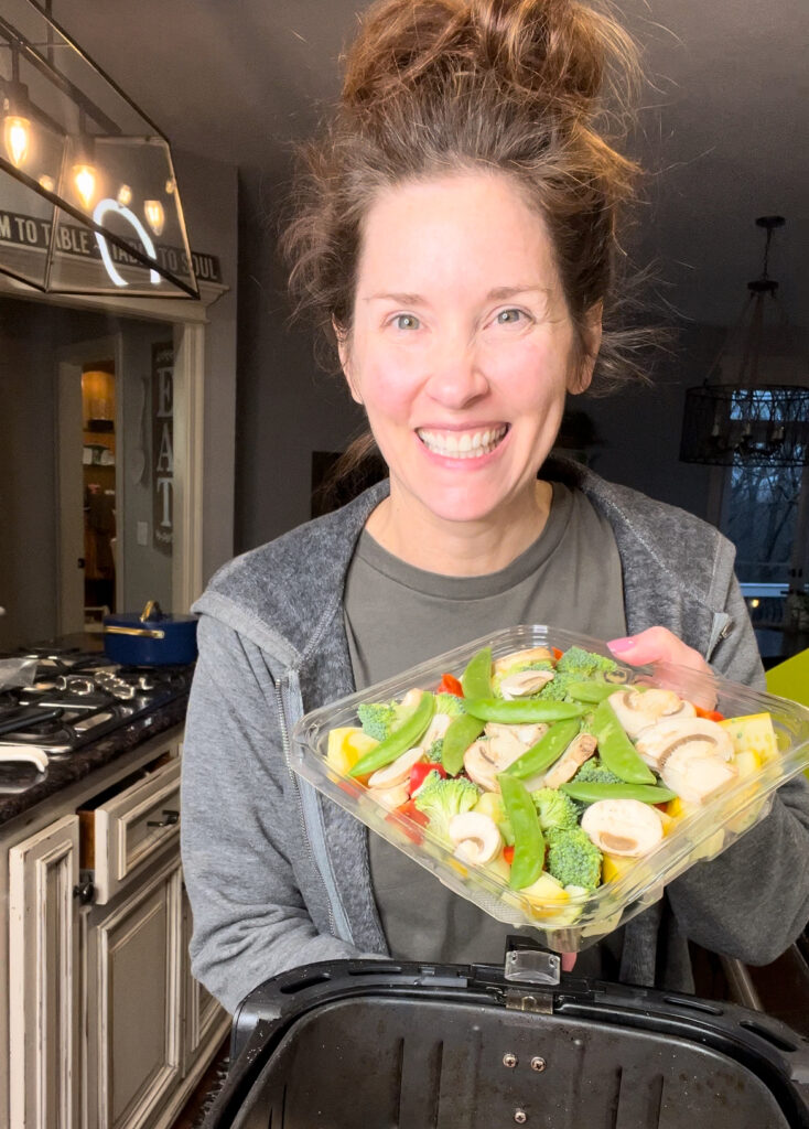 Ok mama, here is how I made this incredible air fryer stir fry!