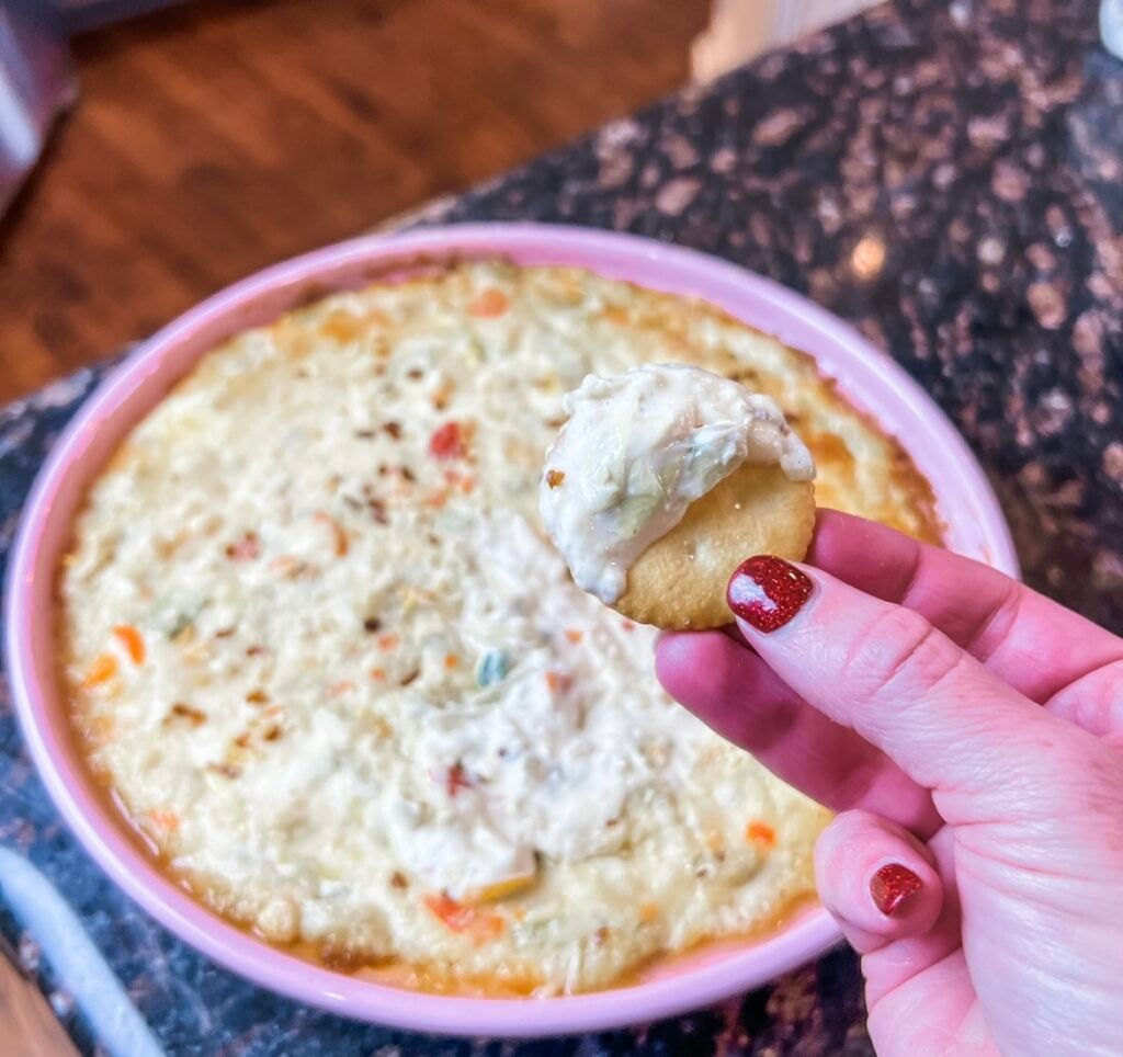 This artichoke crab dip recipe is a must try! Especially if you love dips! Perfect yummy dip for any gathering!