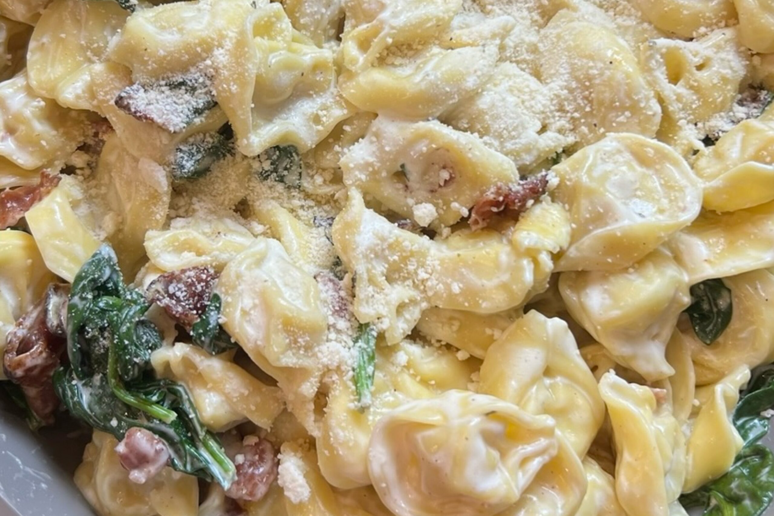 Once you add the spinach add the strained tortellini immediately. Combine well.
