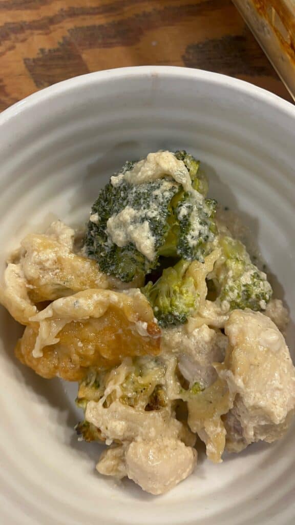 If you want to stretch this meal even further, serve Baked Chicken Alfredo with Broccoli over cooked pasta or rice. Leftovers reheat beautifully, making this a great option for meal prep or next-day lunches.
