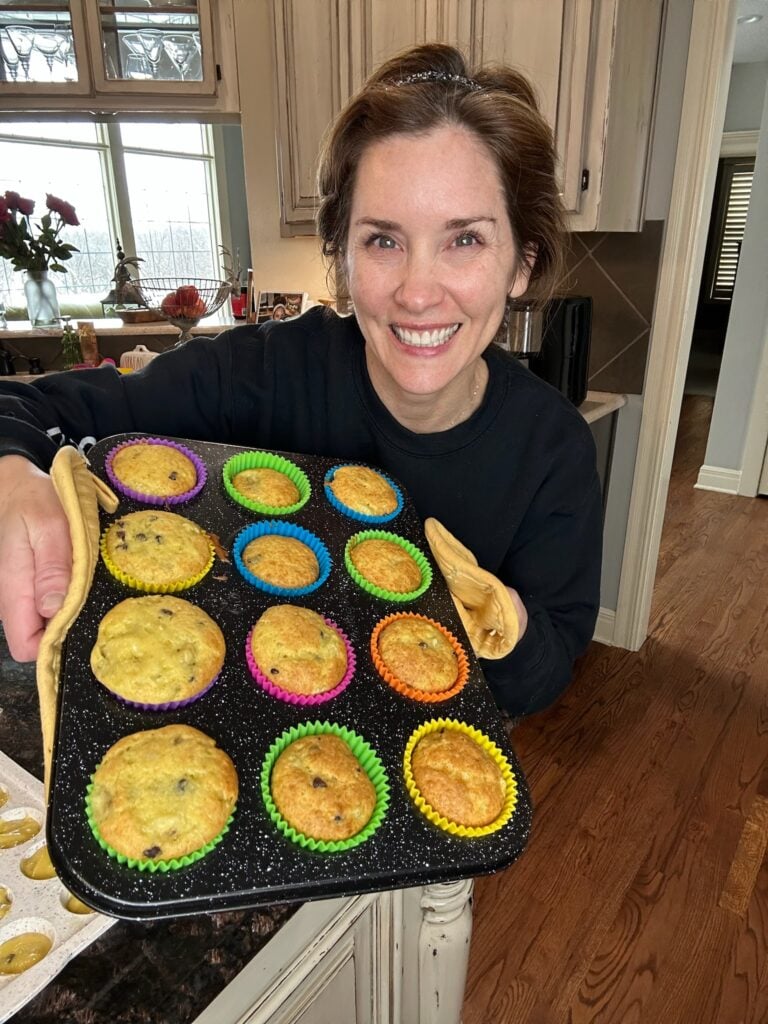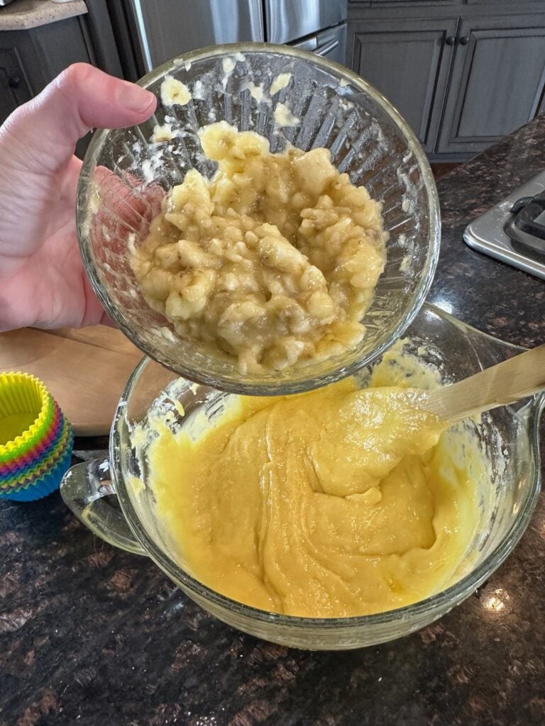 Since I have 4 kids, that means a lot of teachers to show our gratitude for all that they do for my children. Making a loaf of banana bread for each teacher, and then the ‘specials' teachers who do art and music etc. … honestly that felt like a lot when I was already spread thin trying to be a mama to 4! So we made muffins instead! Just a few muffin tins of banana muffins and we were able to give a treat to every teacher and each faculty member; and even have some left over for us to enjoy!