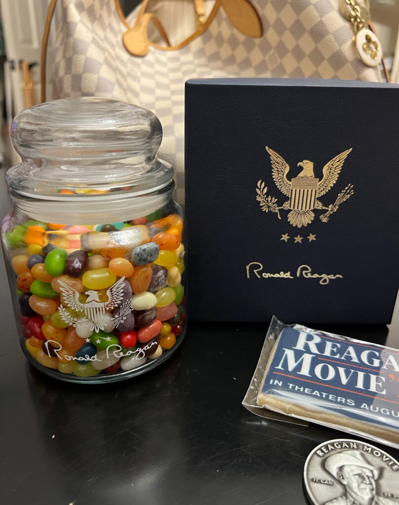When we arrived back at the hotel for the evening they had this incredibly thoughtful gift waiting for us. It was a replica of the infamous Jelly Belly jelly bean jar that graced the desk of the oval office during REAGAN’s time of presidency. The picture of this gift is below, and now graces my Crazy Busy Mama desk ?