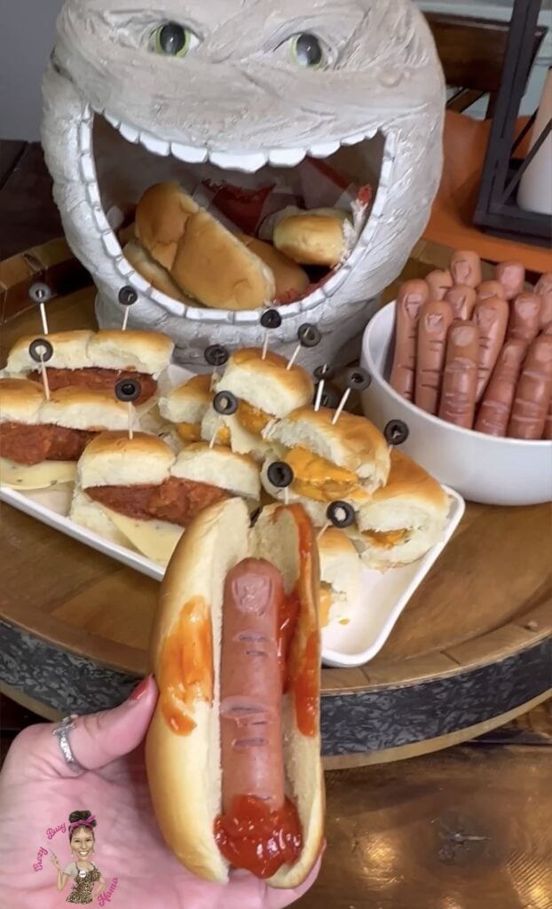 Such a fun thing to make. Hot dogs can even be scary fun! Great idea