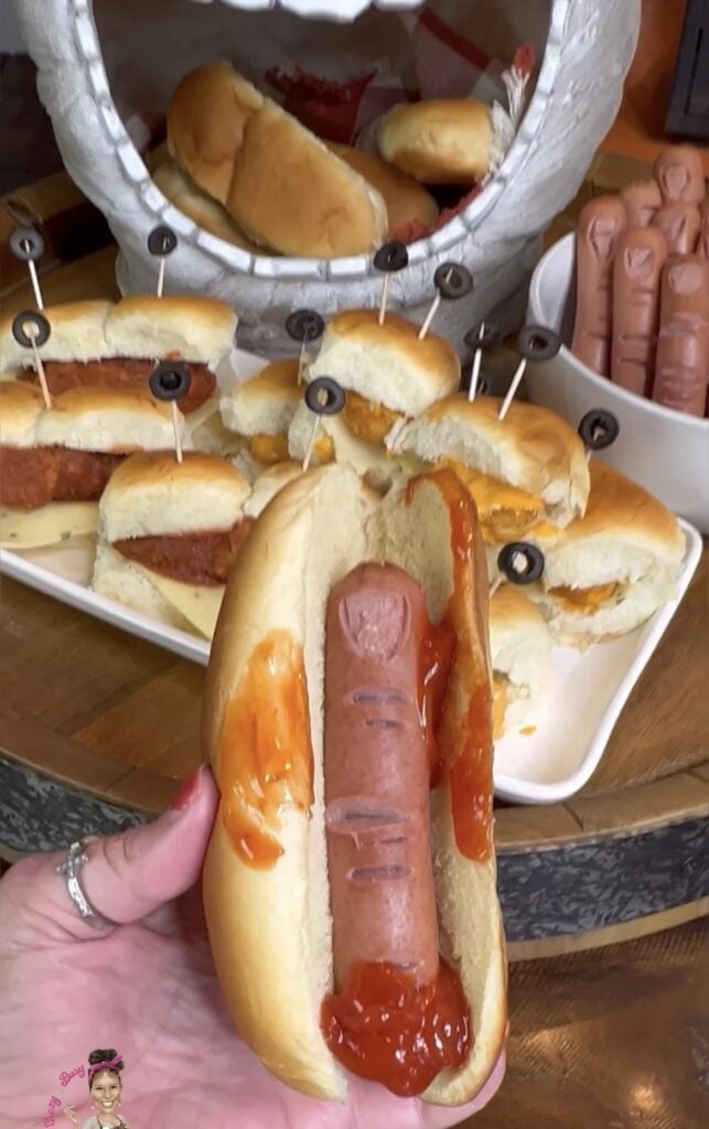 - Take them out drain the liquid and serve in bun with smeared Ketchup to appear as bloody fingers.