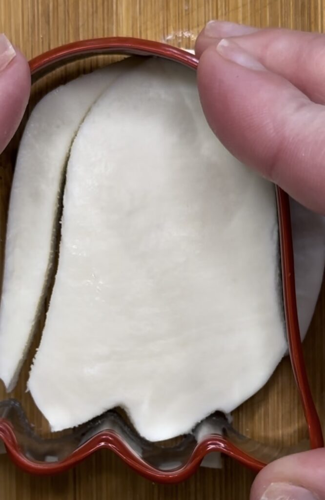 I had a bigger ghost cookie cutter so I moved it to fit (like you see in the video and pictures below)