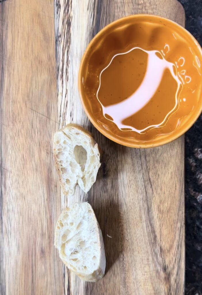 After brushing on oil and vinaigrette, Pop french bread in the oven to crisp up a bit for about 5 mins at 375