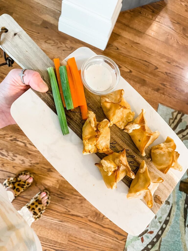 Warning…These are delicious so you might want to double up on that recipe because these will go quick! I always like to serve mine with ranch or blue cheese for dipping and a side of raw carrots with celery too!