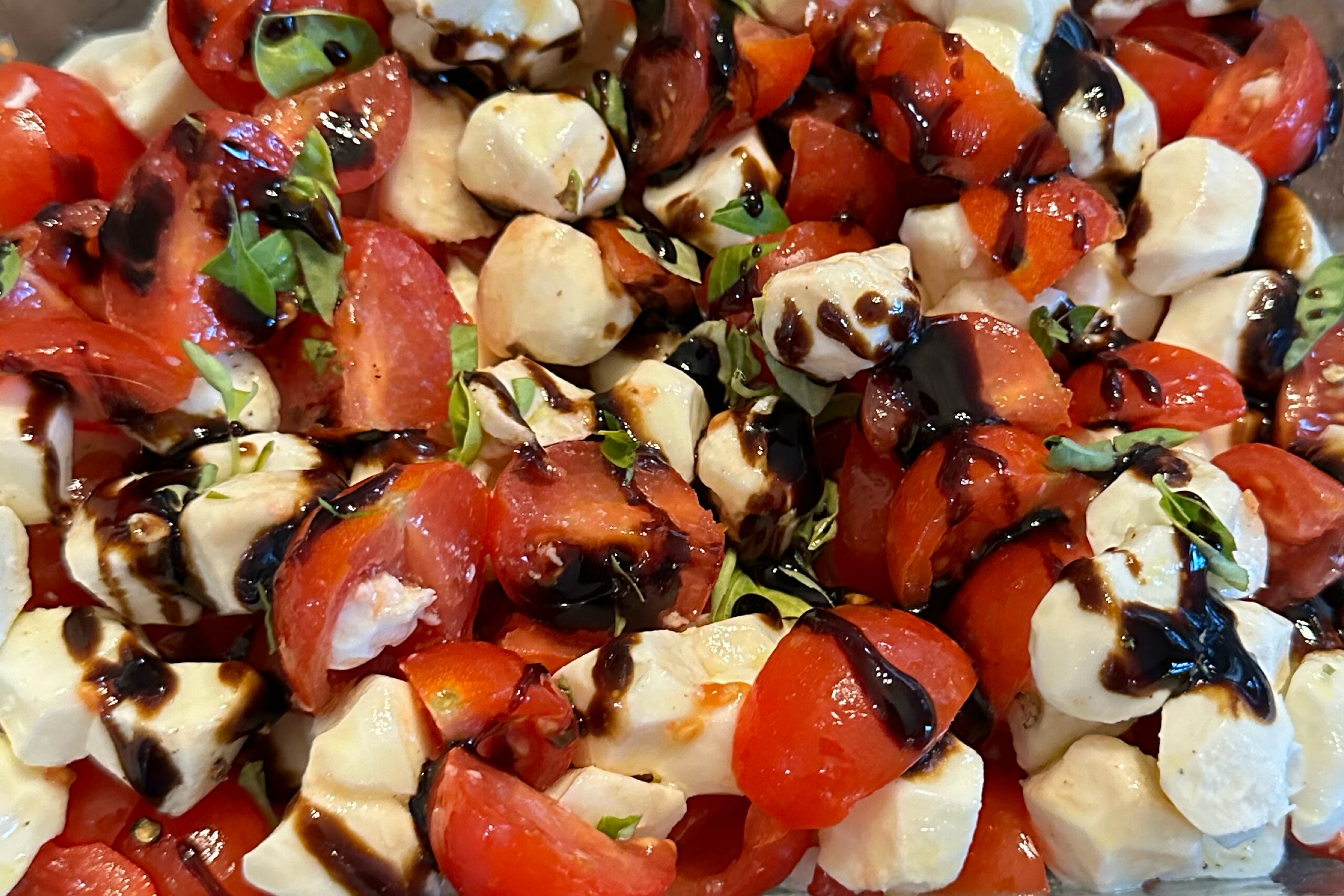 Drizzle with balsamic glaze and serve immediately or refrigerate until ready to serve.