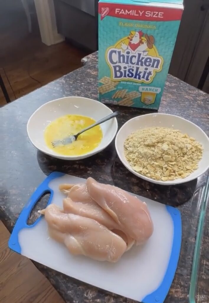 You can use regular Chicken in a Biskit crackers too, I just happened to see the zesty ranch new flavor and had to try it. Save the mess on your hands and try breading this chicken with the Better Breader, its easy to do this way and you can throw right in your dishwasher for easy clean up.