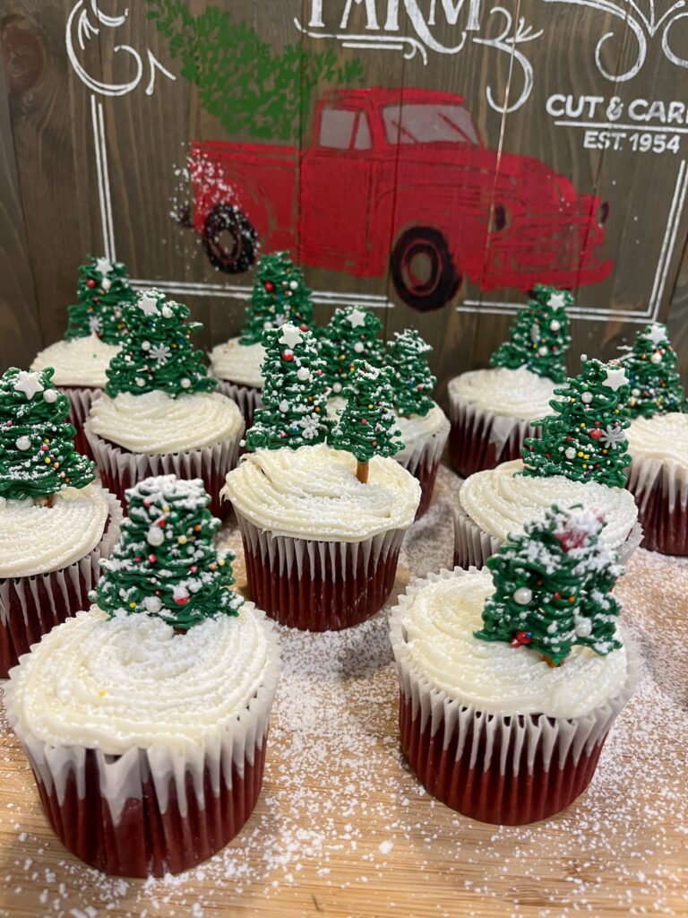 Not only do they look like something straight out of a bakery window, but they also taste incredible with their red velvet base, creamy frosting, and adorable chocolate tree toppers. Trust me, these will become a new family favorite, and your kids will love helping decorate them.