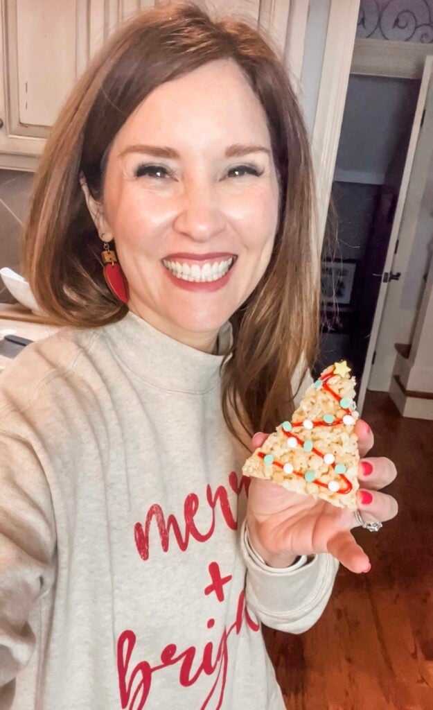 Want to make your Christmas Tree Rice Krispie Treats extra merry and bright? 💚 Mix a few drops of green food coloring into your melted marshmallow mixture before adding the cereal — it’ll give your trees that perfect festive hue! 🌲