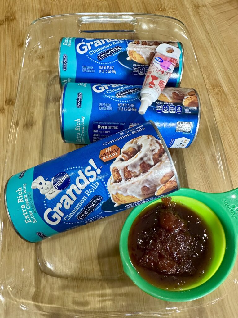 - 3 cans refrigerated cinnamon rolls Grands recommended