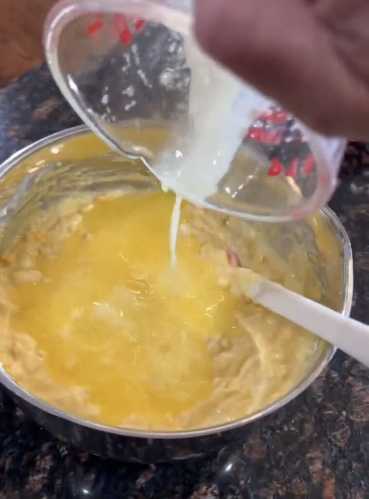 - Once corn and wet ingredients are mixed well in bowl add dry corn bread mix