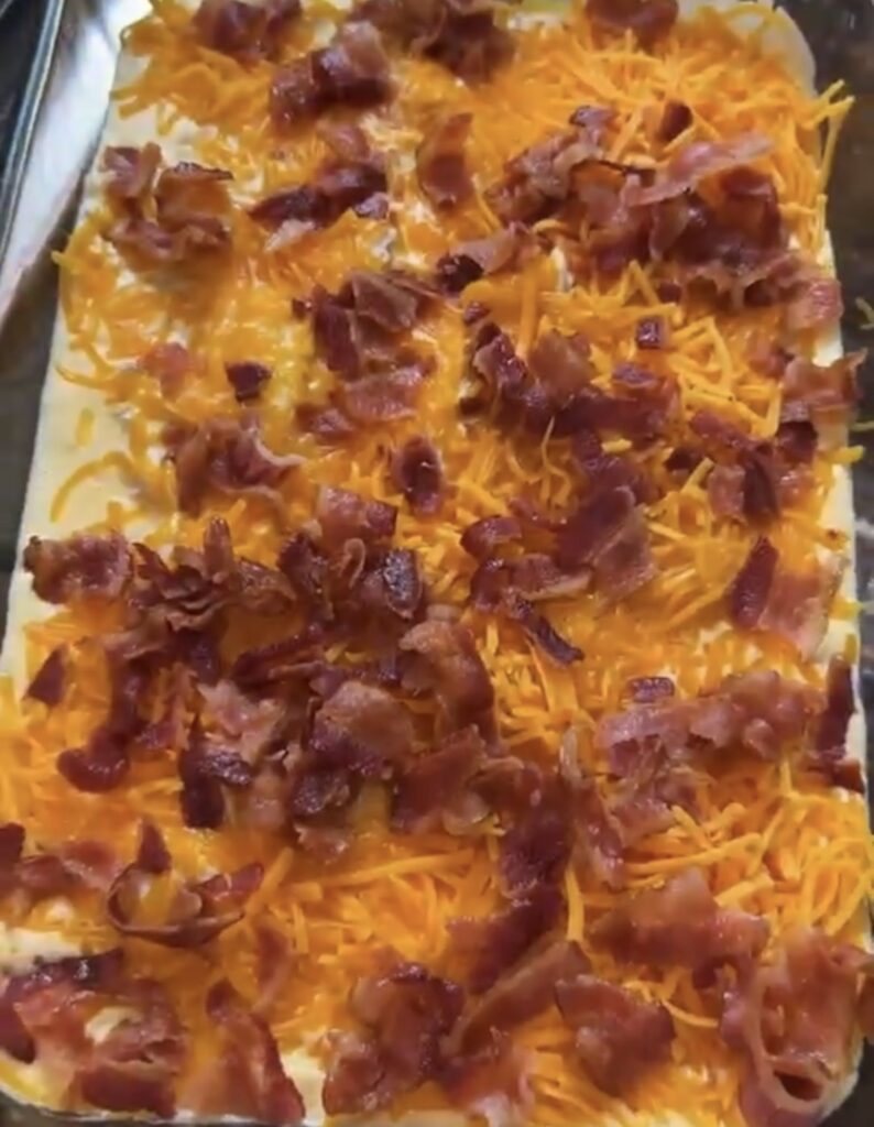 • Sprinkle bacon pieces over the entire top of the chicken mixture