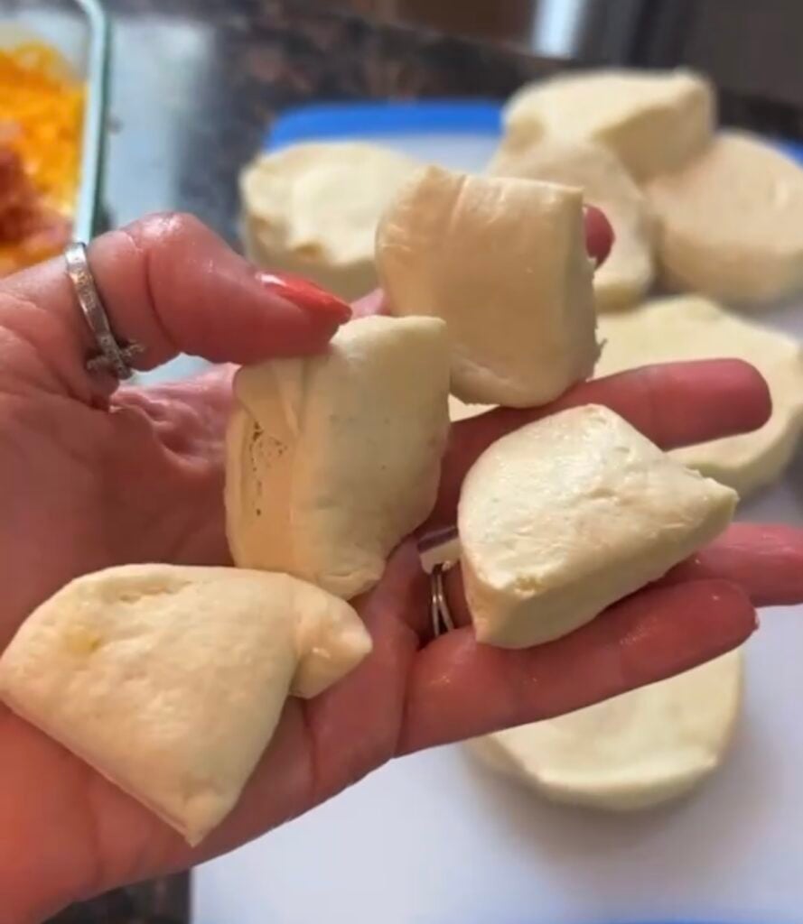 • Top with 1 can of grand biscuits cut into quarter size pieces and cover the entire 9X13 dish