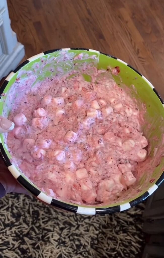 This has been a tradition in our family for as long as it can remember. But we add graped sliced in half and chopped pecans ?