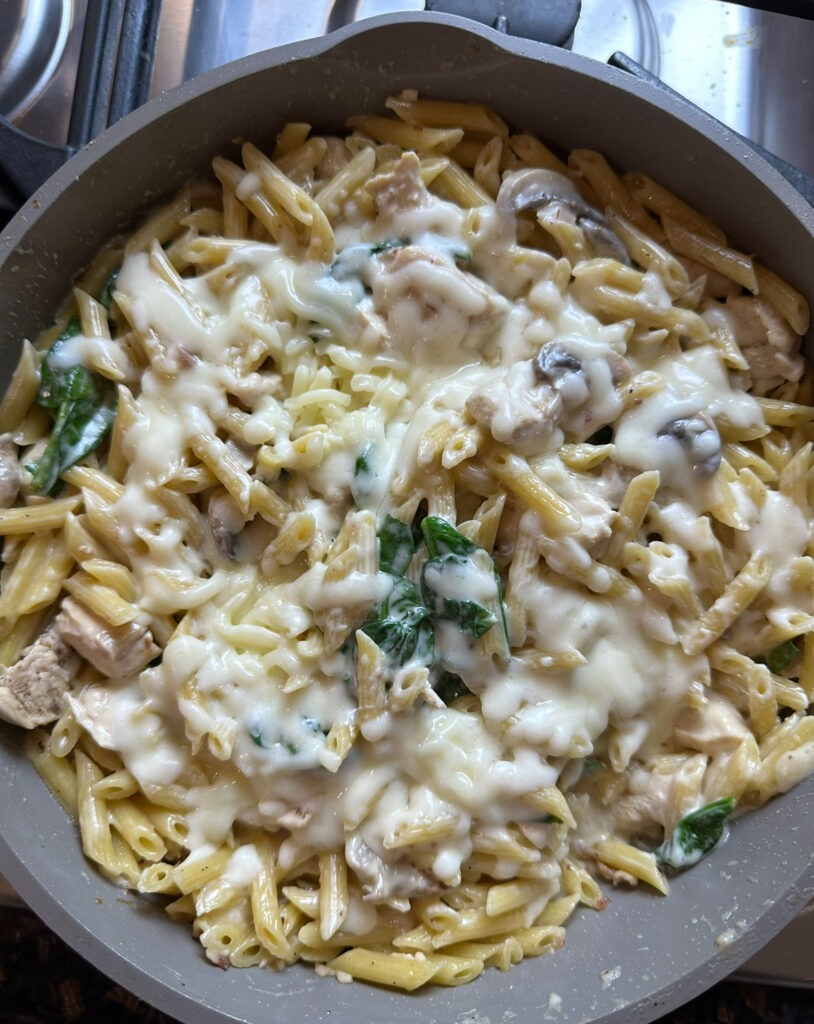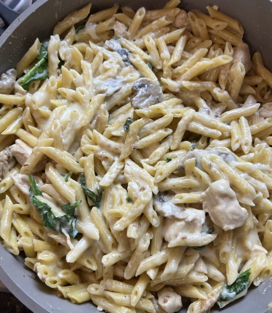 Here is how I put together this amazing Creamy Chicken Pasta Skillet!
