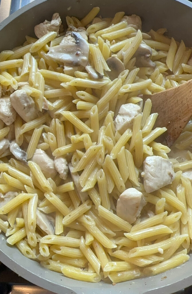- And then add penne pasta (Uncooked) or pasta of choice.