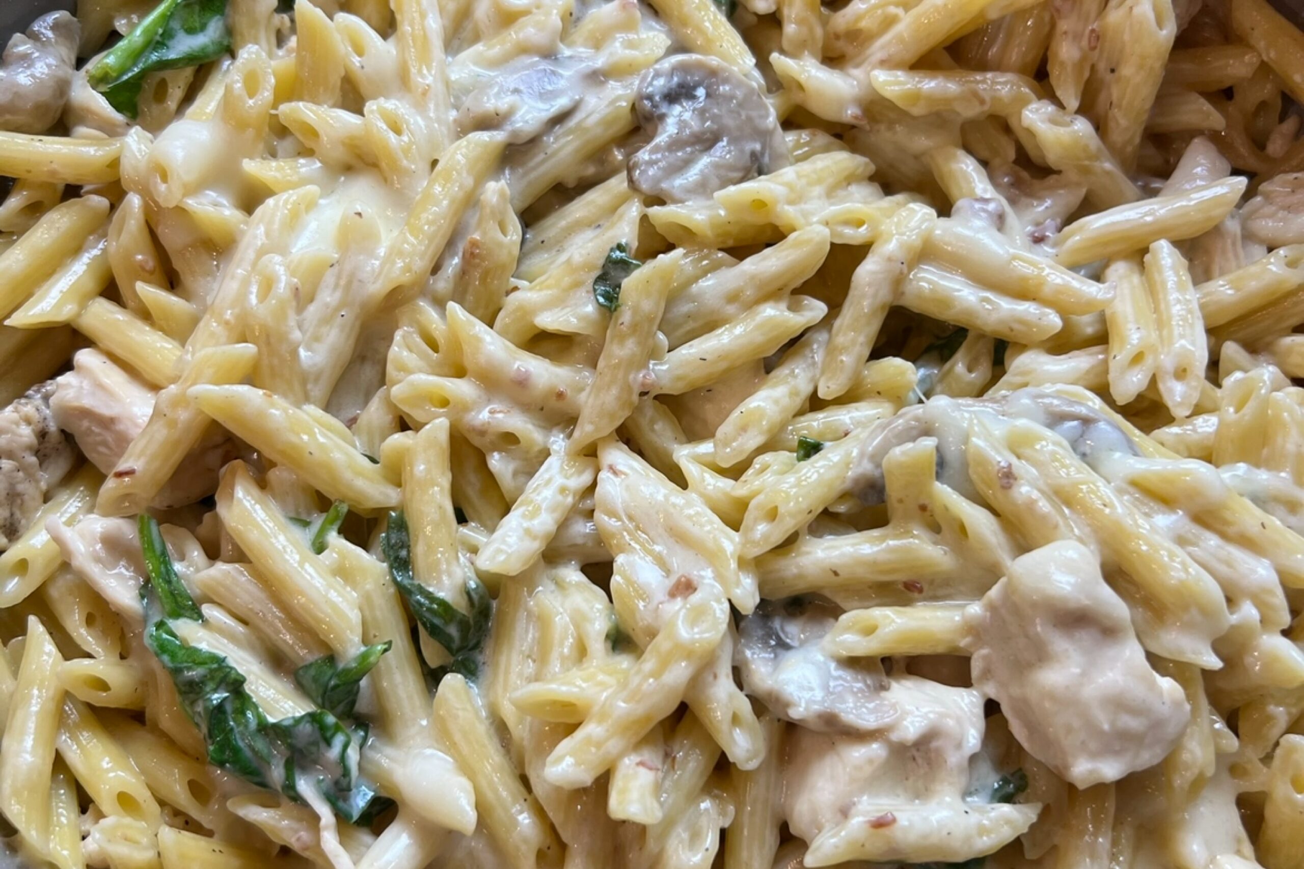 Here is how I put together this amazing Creamy Chicken Pasta Skillet!