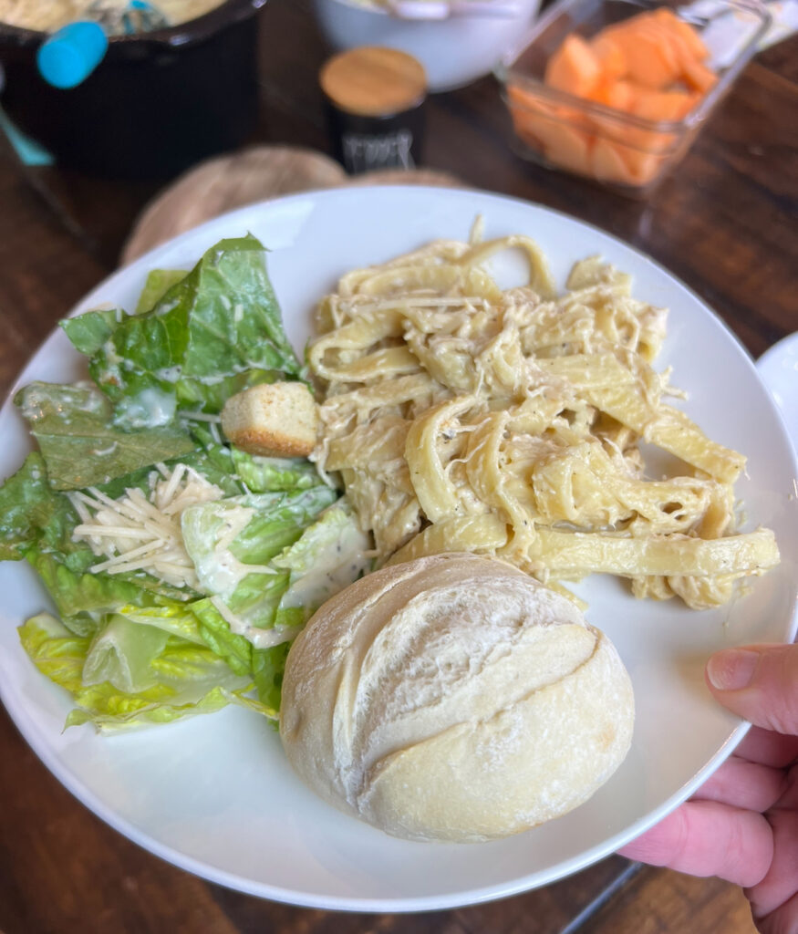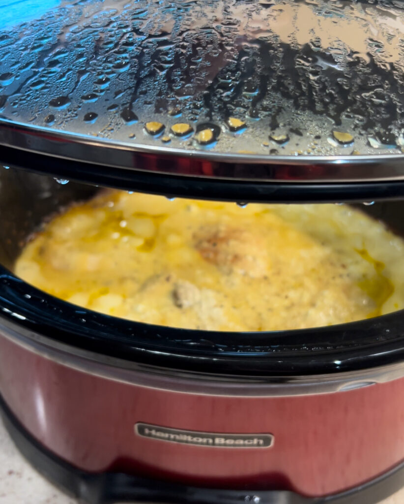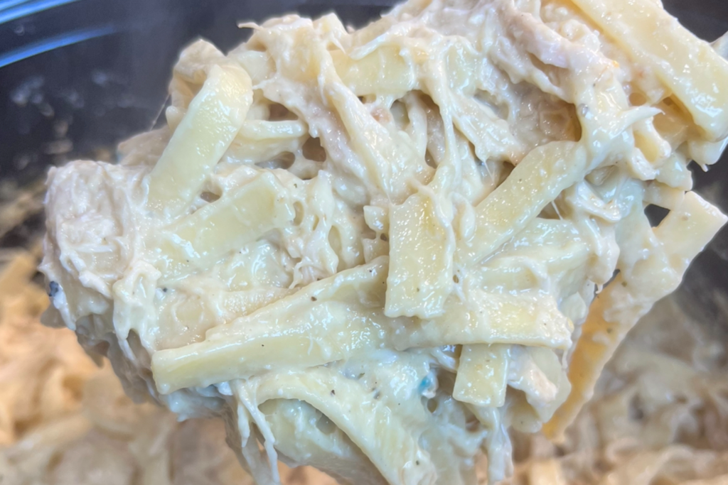 - Cook in slow cooker on low for 4-6 hours – do not lift lid on this Creamy Italian Chicken Noodles!