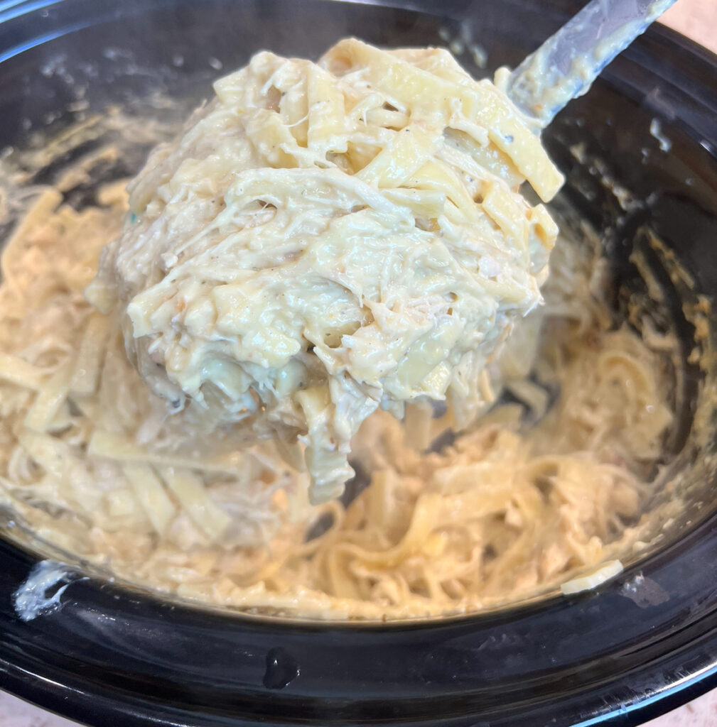 - once combined let your Creamy Italian Chicken Noodles all set in slow cooker for 5-10 mins to combine well and then serve