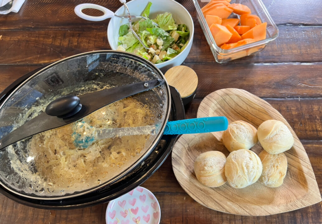 And speaking of less mess, I just serve this Creamy Italian Chicken right out of the slow cooker on the table.