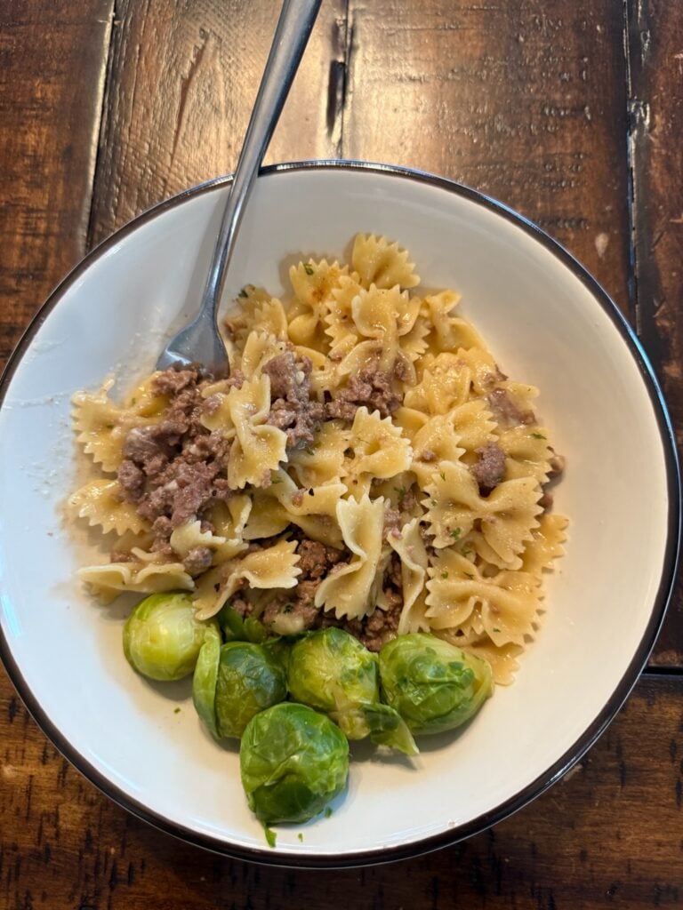 So, what's on the menu tonight? Creamy Parmesan Garlic Beef Bowtie Pasta