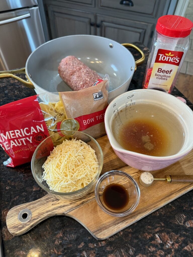 How to make Creamy Parmesan Garlic Beef Bowtie Pasta: ingredients you need!