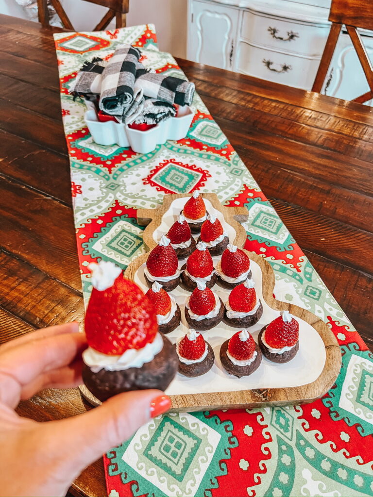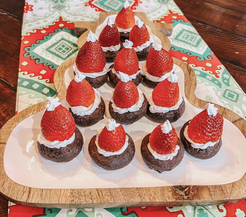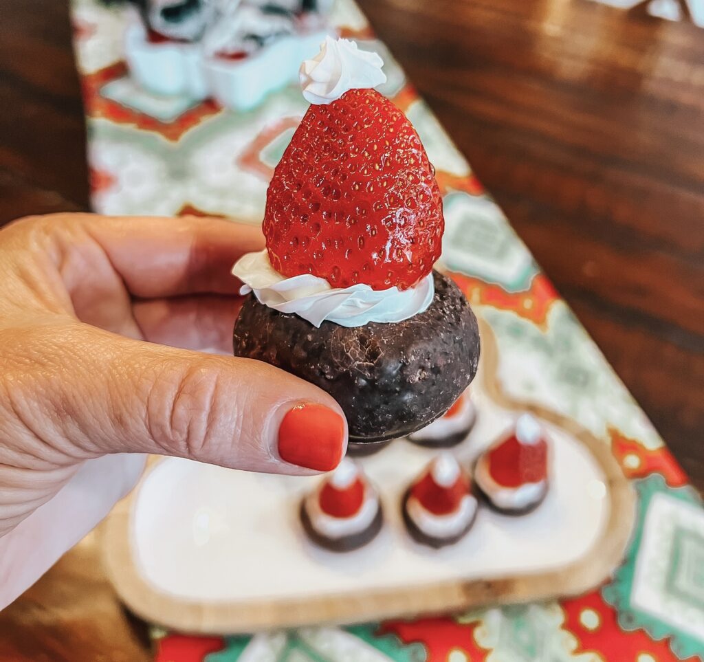 How cute would these Santa Hats be for your Holiday Spread! Talk about spreading Joy! Just the sight of them brings a smile to your face not to mention the deliciousness of these little cuties!