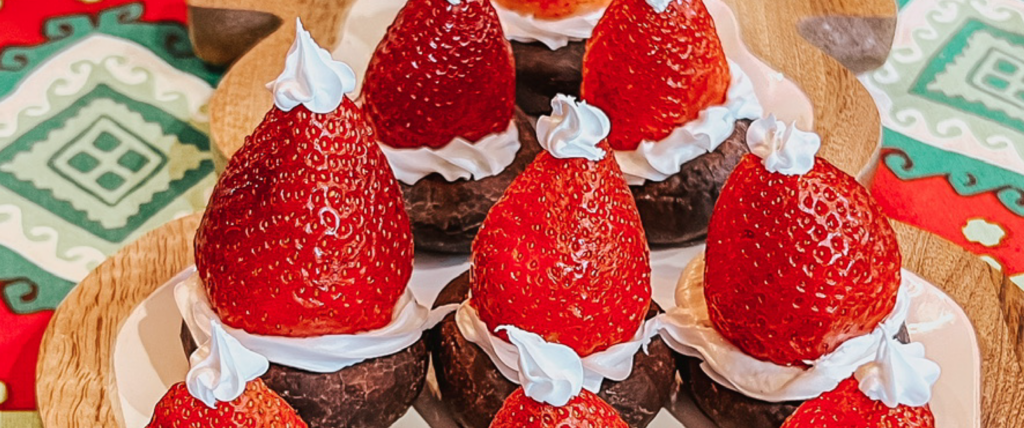 Want your Donut Santa Hats to be the hit of the holiday table? 🍩✨ Use strawberries with the tops sliced off as the hat, and place them on mini powdered donuts for that perfect Santa look!