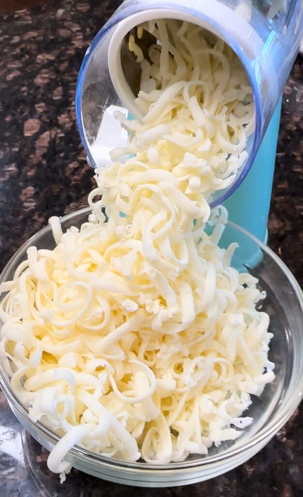 I prefer to shred my own cheese the taste texture and even the cost is better, but you absolutely can use pre shredded cheese too. I love this cheese shredder -HERE posted below makes shredding cheese super easy and you can throw it in the dish washer when you are done making it an absolute breeze. So if you prefer shredding your own over bagged cheese, you have to grab this shredder!