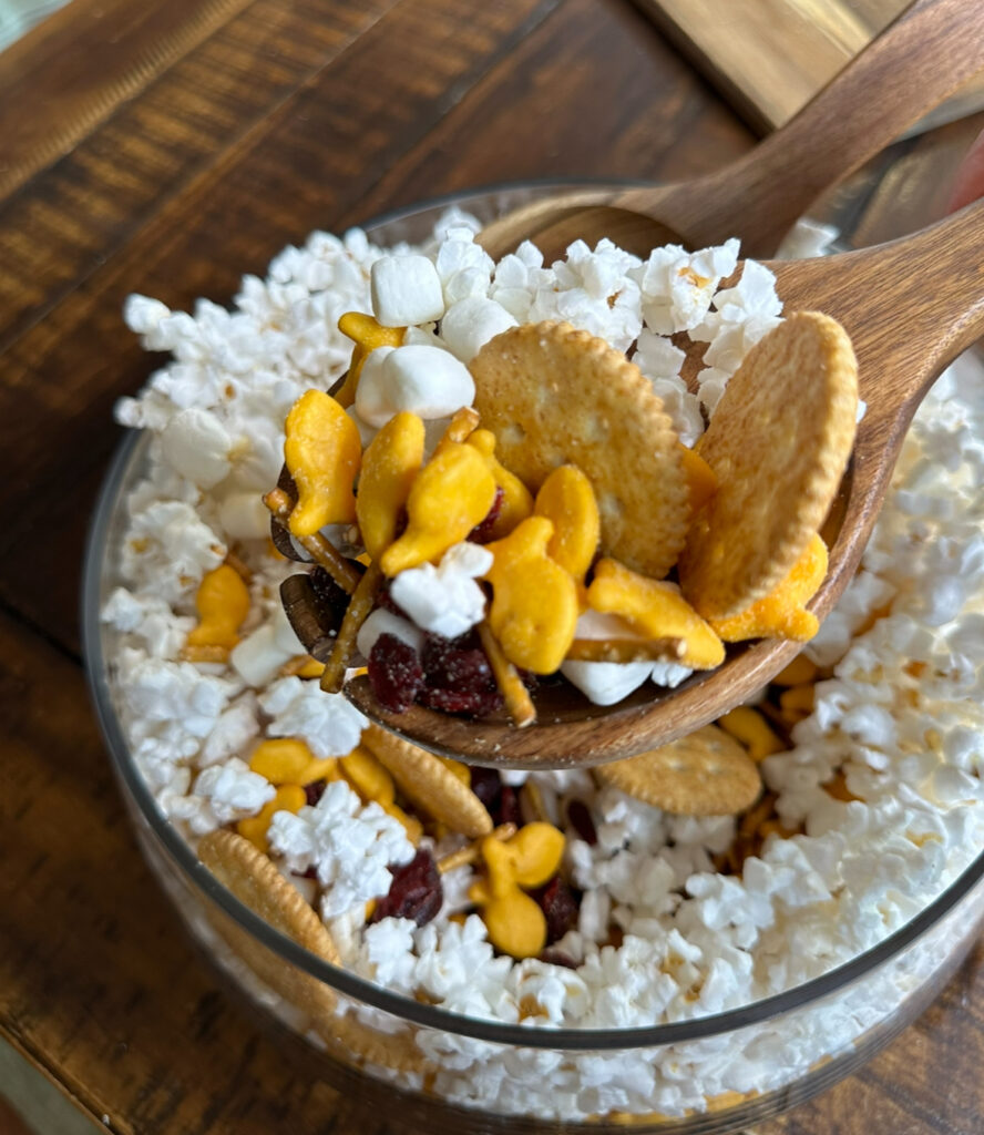 Each ingredient tells HIS story! I have included and image below with scripture to help you share the story with your kids as you make this yummy snack mix.