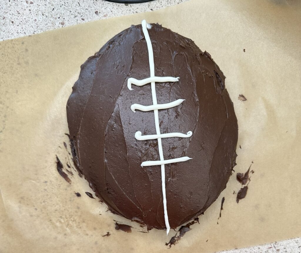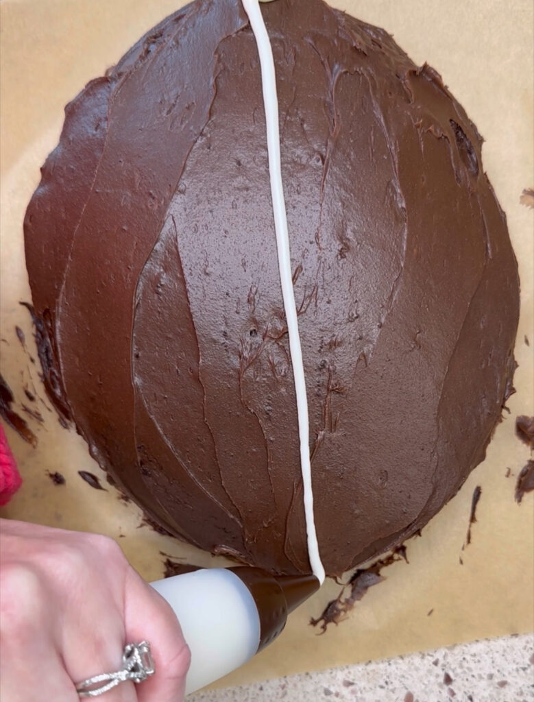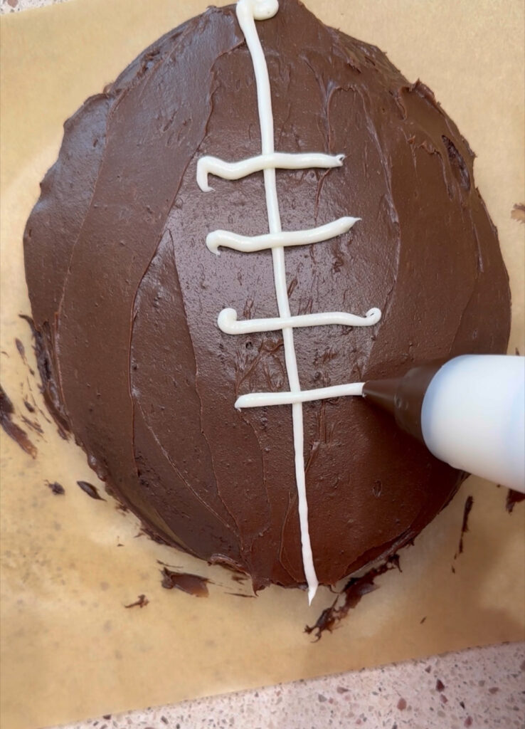 Here are a few visual steps for the Easy Chocolate Football Cake