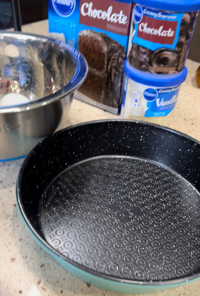 This will be a great recipe to get your kids involved with you in the kitchen! Did I mention, how super simple it is? Just grab your favorite chocolate cake mix, chocolate and vanilla frosting! Yup! Thats it!