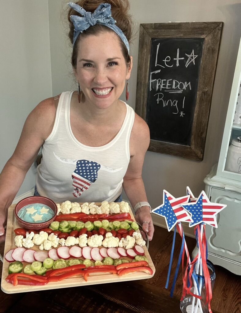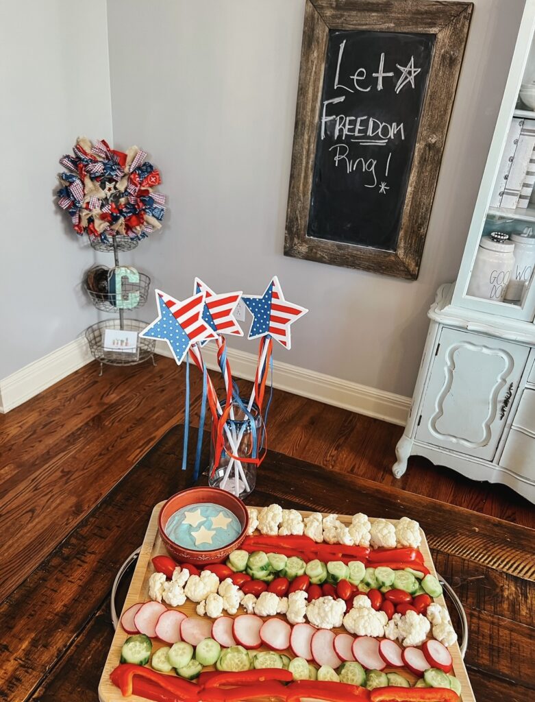 Anytime us mamas can fit in veggies somewhere with our family it is a win, especially with any holiday! This Flag Veggie Tray Idea will be a hit no matter the crowd.
