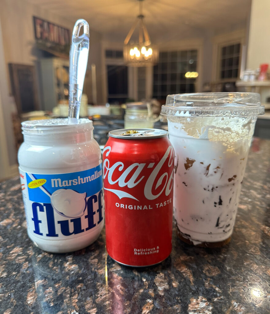 Fluffy Cokes are all the rage right now and let me tell you, they are viral for a reason! They are so easy to throw together and are absolutely delicious! If you love coke floats, you will love this Fluffy Coke! Who would have thought coke and marshmallow fluff? Sounds weird, right? Certainly not a health drink, so don't come at me hating in the comments! This Fluffy Coke is reminiscent of an old school Coke Float with ice cold coke and a scoop or two of vanilla ice cream. Honestly, need to do a blind folded taste test of the two together at the same time because I am not sure I could even tell the difference the two tastes exactly alike.