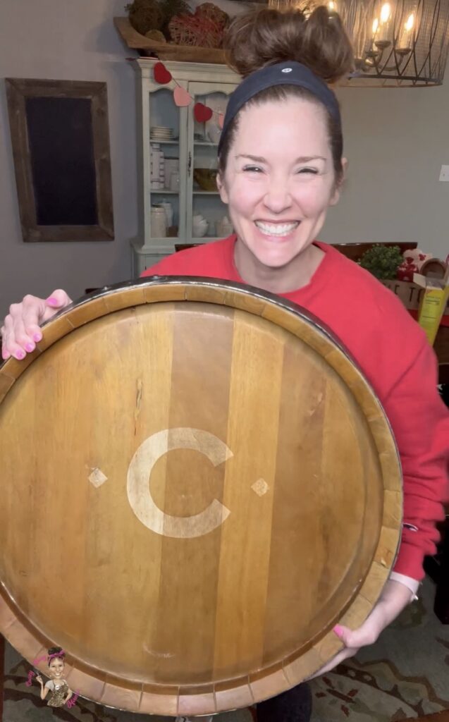 Grab that large Charcuterie style board. I love this wine barrel lazy susan. The wine barrel gives it a little edge so nothing accidentally falls off, and the lazy susan style is perfect for serving!