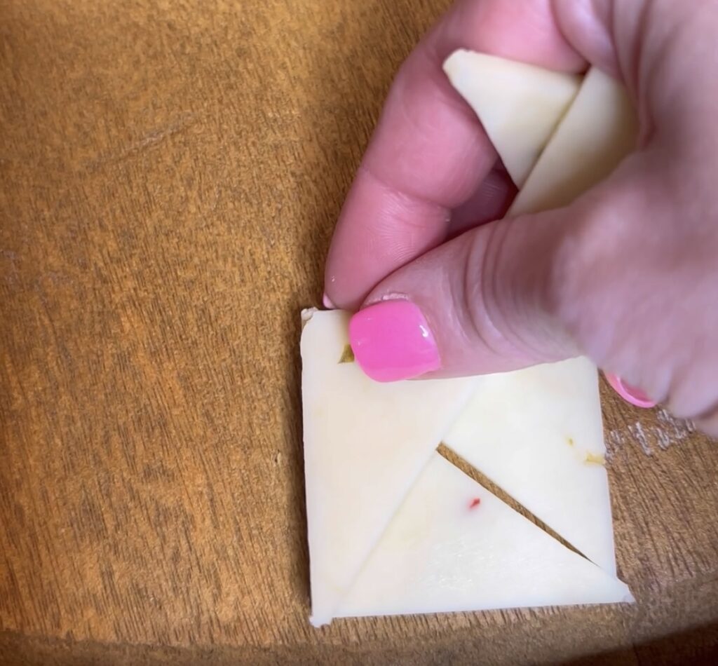 • Prepare your meats and cheese. Cutting some cheese in squares and some in triangles – I buy mine precut squares making this part super simple