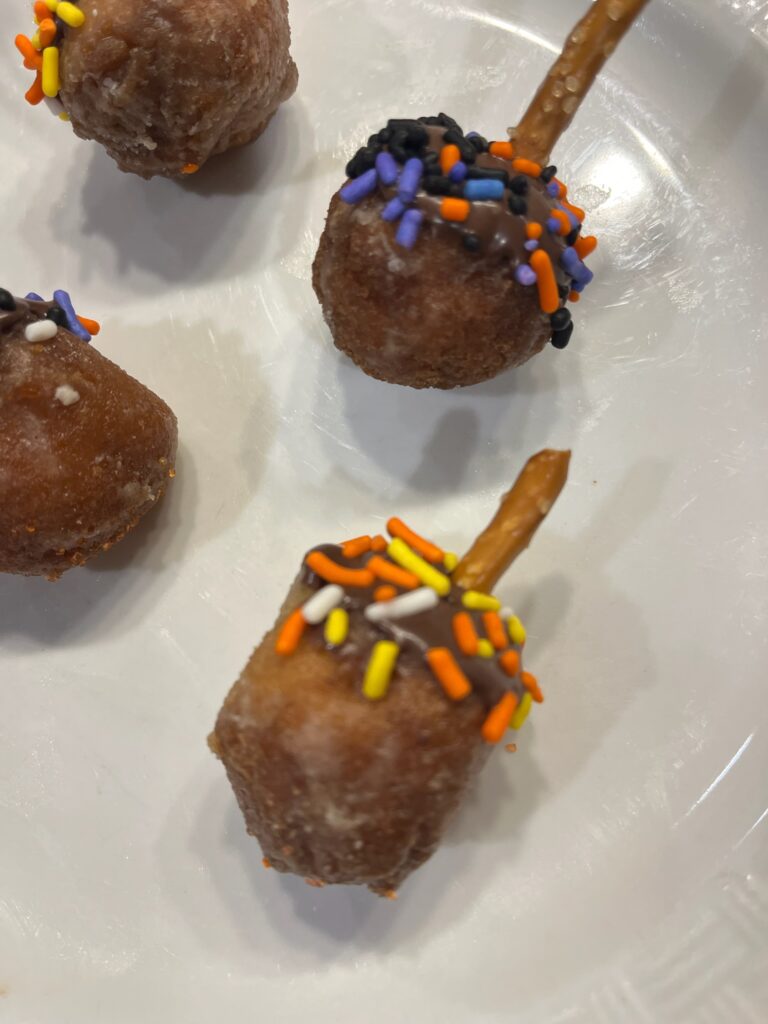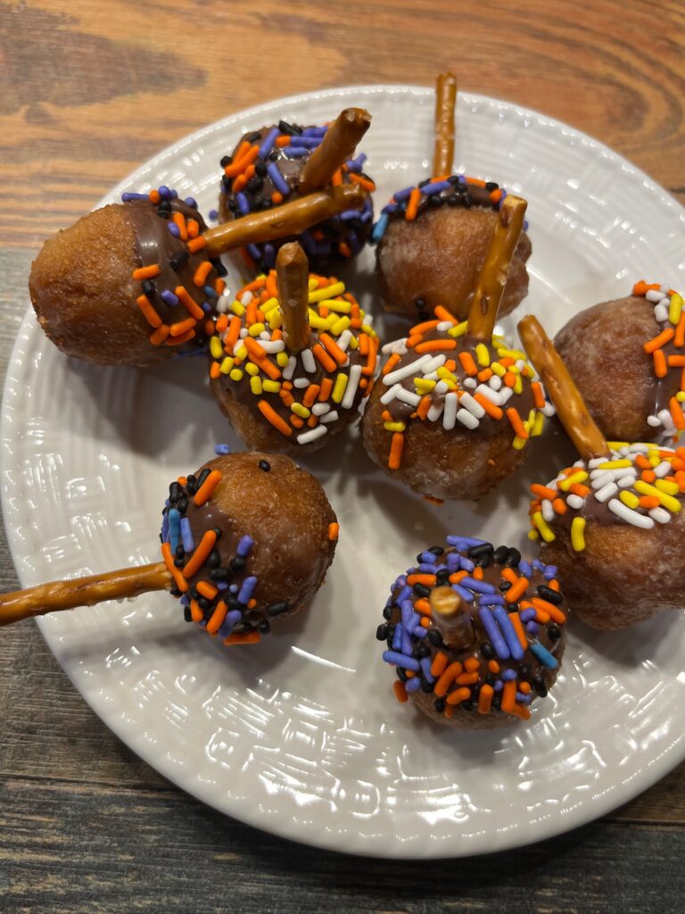 - Pumpkin Spice Acorns – Use pumpkin spice donut holes and white chocolate with cinnamon sprinkles.