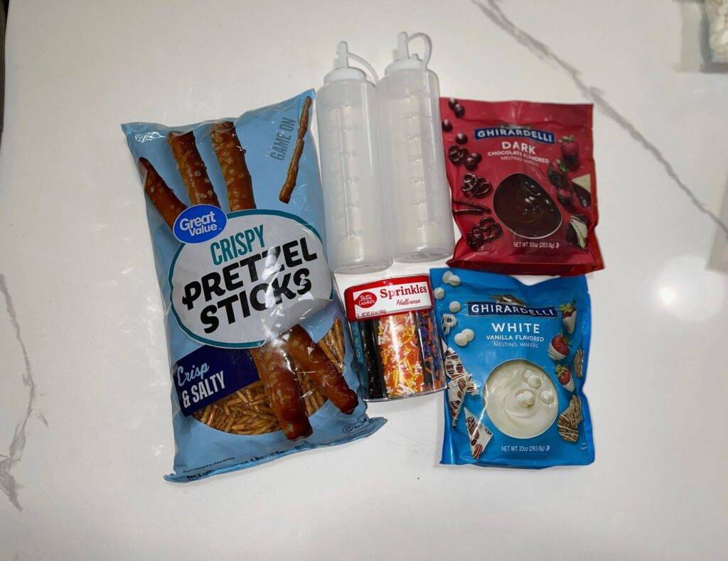 - Arrange Pretzels: On a parchment-lined baking sheet, place pretzel sticks in a starburst pattern to form the web base (8–10 sticks).