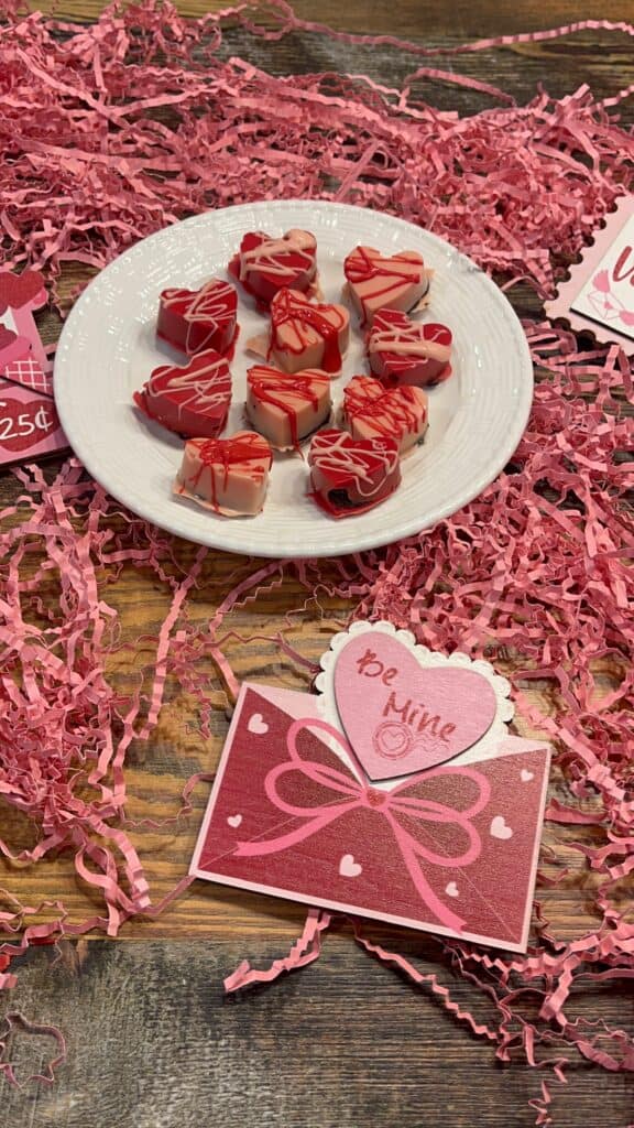 Optional: drizzle with the opposite chocolate color for a fun Valentine’s finish.