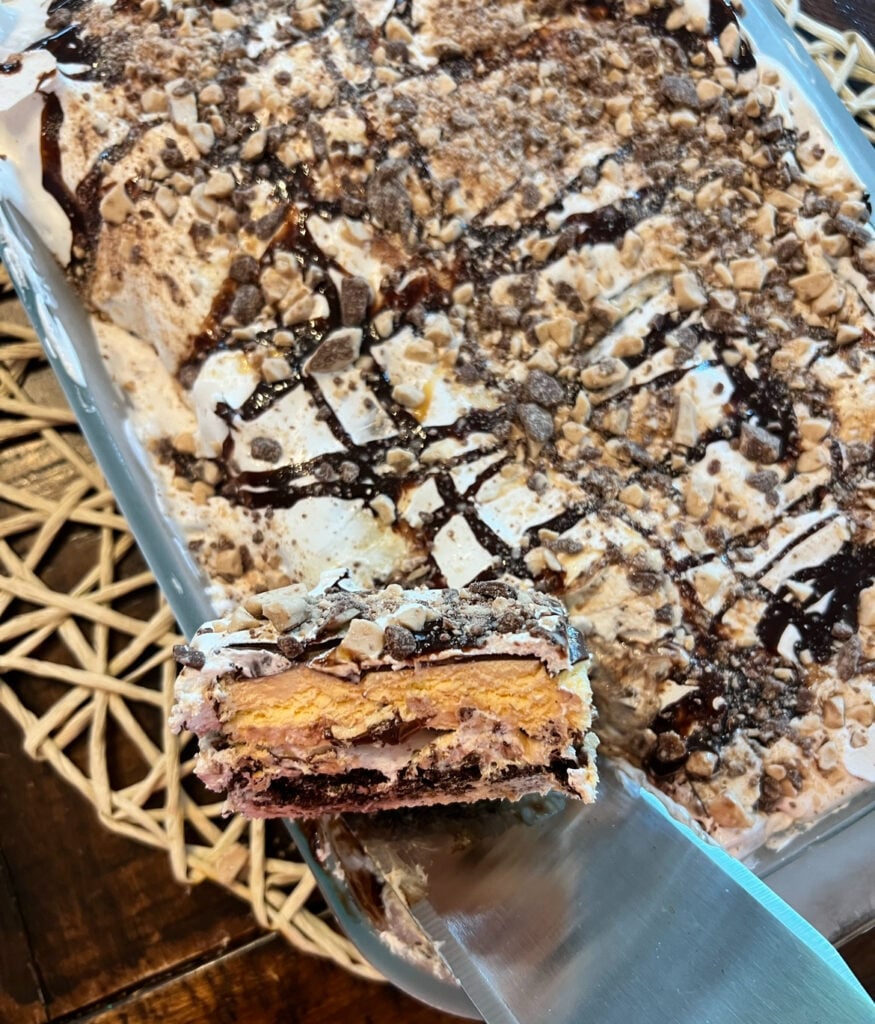 You can easily cut this recipe in half and do an 8X8 ice cream cake for a smaller crowd.
