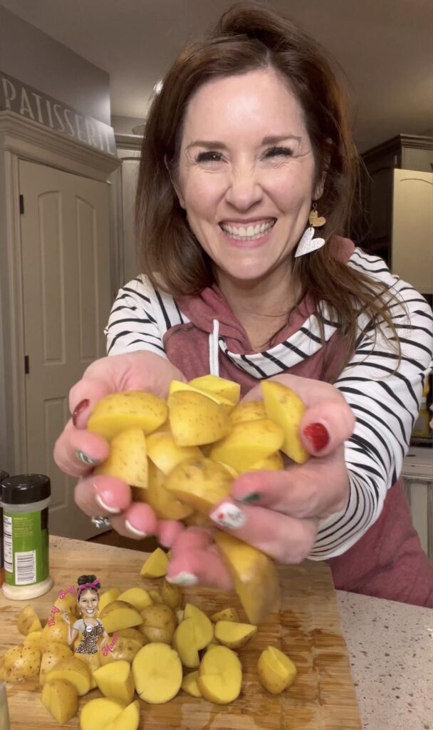 - add 1/2 tbsp of garlic salt and 1/2 tbsp of paprika to potatoes and shake in baggie to coat