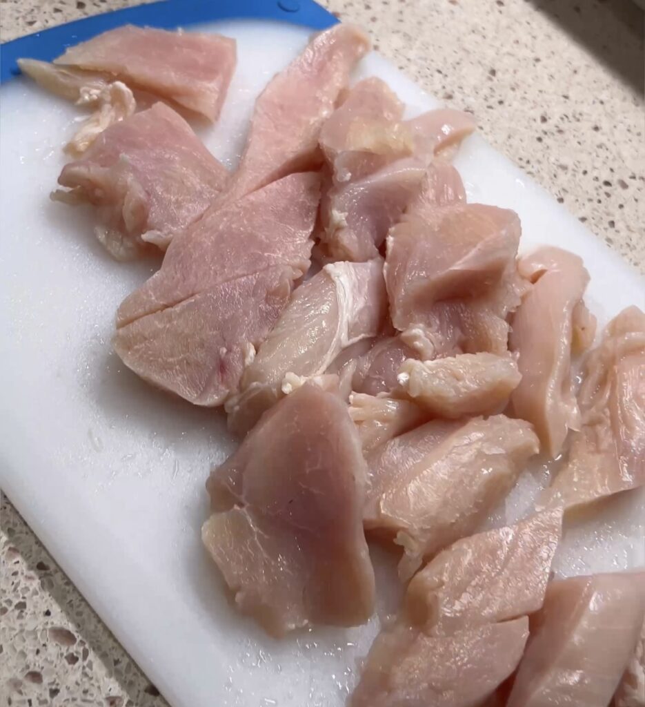 - Slice or cube chicken breasts same size and use 1/2 tbsp of garlic salt on chicken