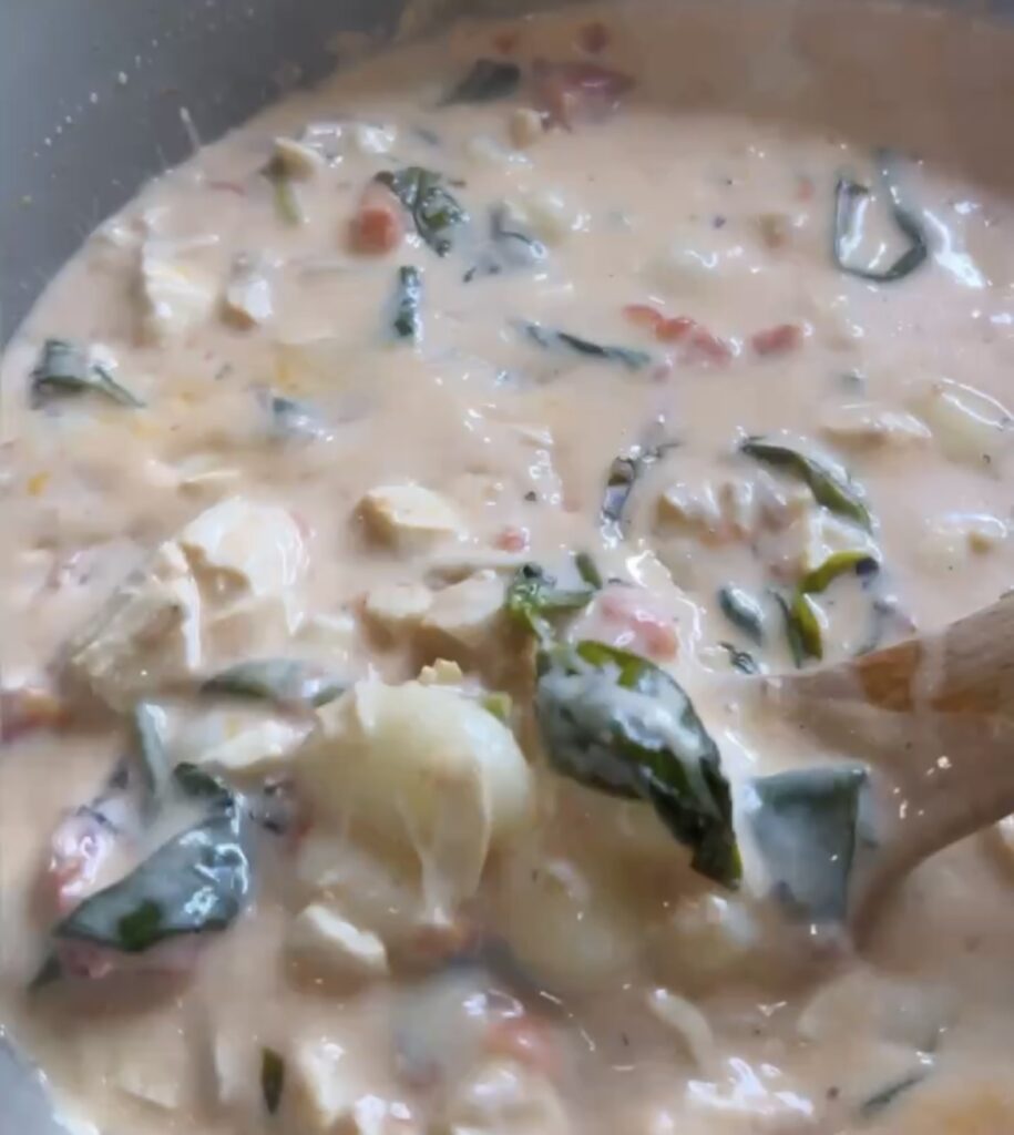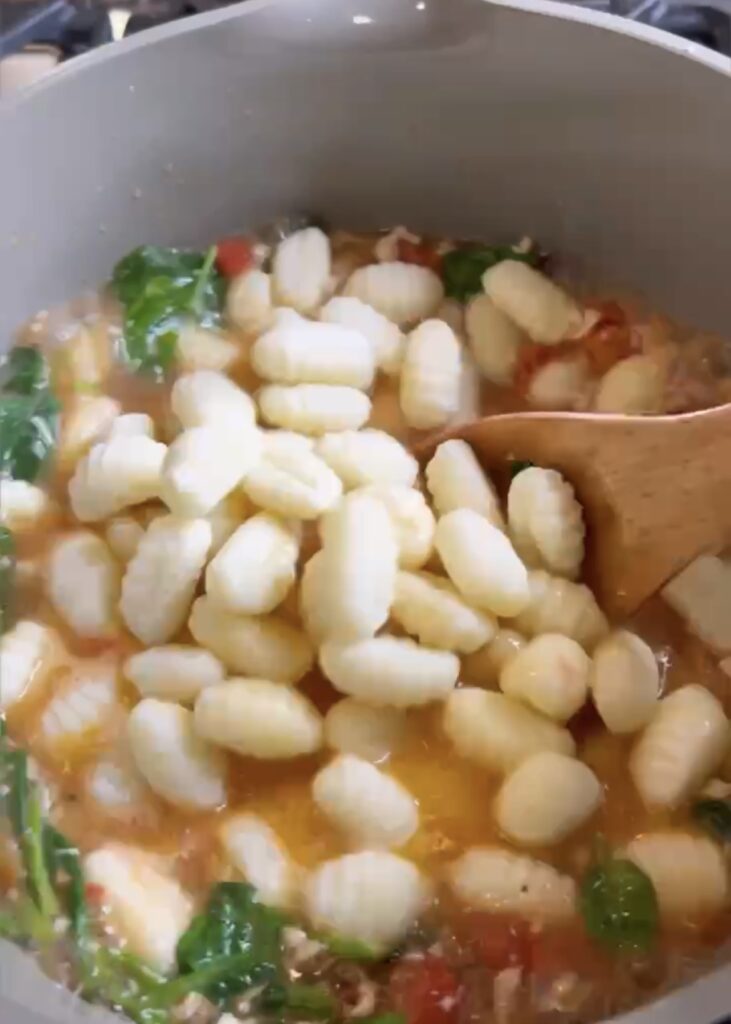 Once the your liquid comes to a simmer add gnocchi. Cook simmering for about 4 -5 mins